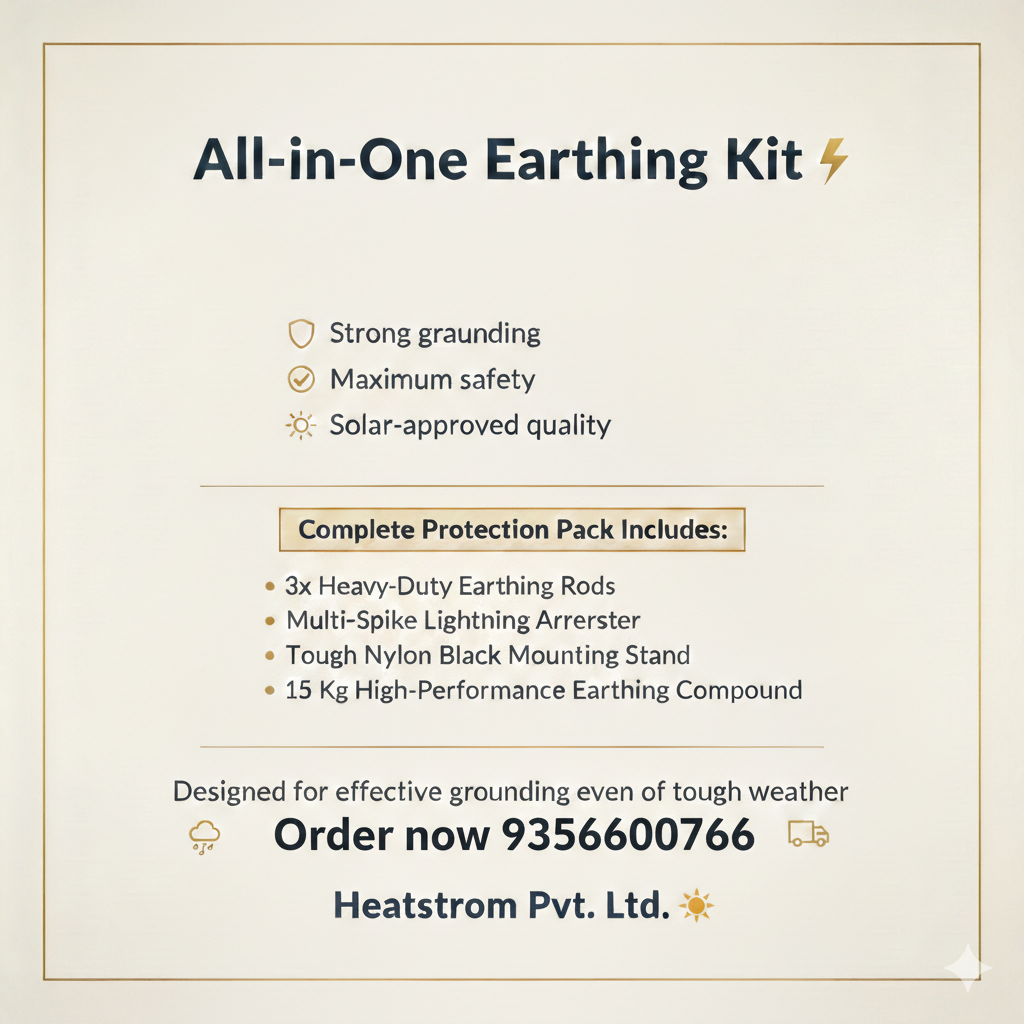 Electrical safety is a silent requirement in every solar installation, yet it plays a decisive role in long term system reliability. Heatstrom Pvt Ltd supplies Solar Earthing Kits designed to protect solar power systems from electrical faults and lightning related risks. A proper earthing setup ensures that excess current is safely discharged into the ground, reducing the risk of equipment damage.