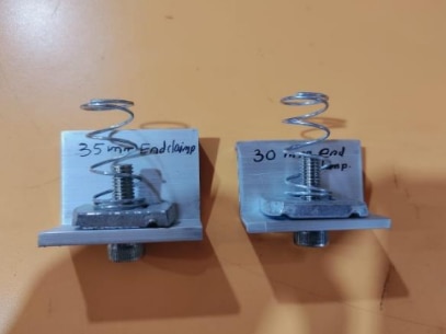 Secure your solar panels efficiently with Heatstrom’s premium End Clamp. Available in 30 mm and 35 mm types, it is crafted from high-quality aluminium for durability and corrosion resistance. Each clamp comes complete with nuts and springs, ensuring a firm grip and easy installation. Designed for lasting performance, our End Clamps are ideal for all standard solar mounting systems.